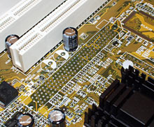 Here's the difference. It's a KL133 board if you don't get an AGP connector - this collection of blank solder pads on the A7VL-VM are where the AGP slot should be. You're stuck with the built-in S3 "ProSavage" video hardware, unless you want to disable it and use a PCI video card.