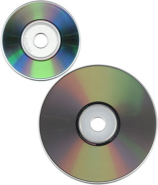 Unpopular they may be, but 77mm CDs are still part of the official specification, and most CD-ROM drives and CD players can read them just fine. If you've got a tray-load CD-ROM or DVD-ROM drive in your computer, open it up. There's probably a circular depression in the middle of the tray you can pop a 77mm disc into.