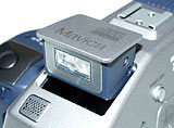 There's a flash mount on the top of the CD1000, but it's just a place to latch a flash on, not a proper hotshoe with contacts. But there's a flash signal output jack on the left side of the camera. You can't use any plain PC cord-equipped flash you like; you have to use Sony's own optional flash for the CD1000, the $AU229 ($US120) HVL-F1000 (which also works with lesser Mavicas).