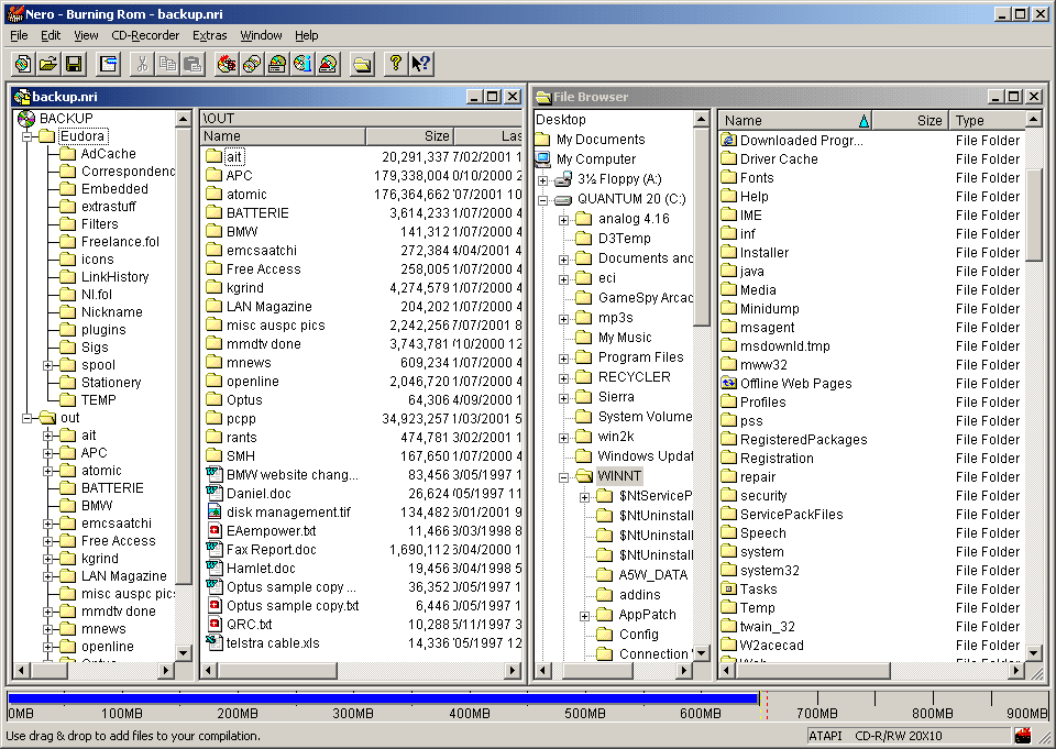 Nero is a full-function CD authoring program, with an imposing feature list as of version 5.0, and even more stuff in version 5.5. You get version 5.5.2.2 on the disc that comes with the Acer burner, plus an "upgrade file" floppy disk that patches some bug or other. I didn't bother with the floppy, because I just took advantage of the Ahead Software download page and upgraded v5.5.2.2 to the current-as-I-write-this v5.5.2.4.