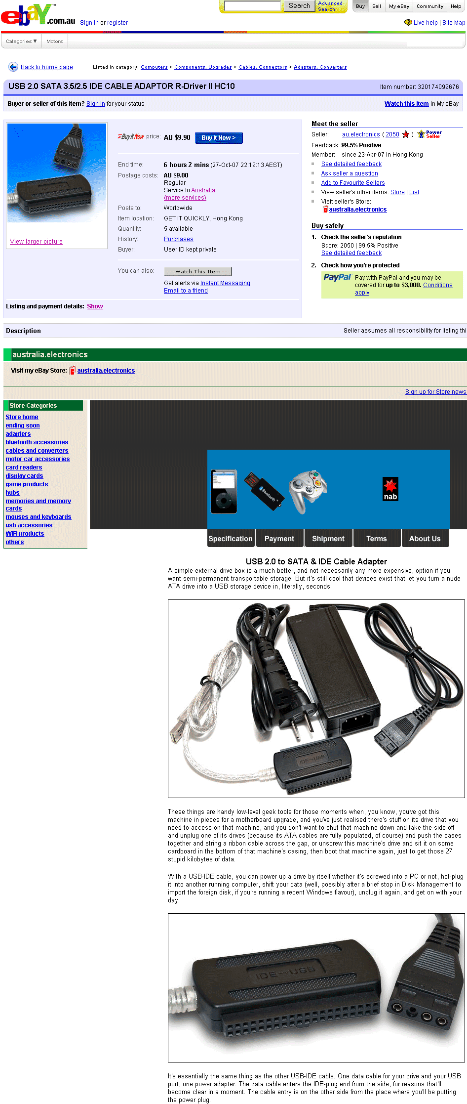 After I put this page up, a reader suggested I try sending eBay a DMCA takedown notice. I wasn't very optimistic about this working, since I'm in Australia and the offenders are presumably in Hong Kong, but what the heck; I sent the notice via e-mail to eBay's Registered Agent.