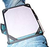 The Flite Tech mouse mat solves the problem, and does it elegantly too. It features an unremarkable 6-by-7-inch mouse pad (removable for cleaning, or for replacing with a similar rectangle of some other substance, like for example a cutdown EverGlide pad), which sits atop a strap-on Velcro-and-elastic-equipped leg-encircling holder-thing, which includes a rigid board to keep the mat flat.