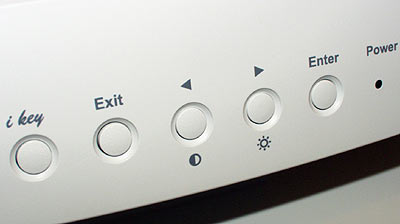 The FP350 gives you the usual collection of simple control buttons and an on-screen display to set the monitor up. The "i key" button on the left is the auto-setup key, a standard feature for LCD monitors. Auto-setup analyses the incoming signal and fits the display to it as well as it can. The FP350 does an excellent job of grabbing a 1024 by 768 signal.