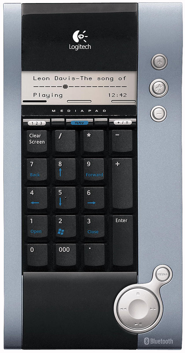 Attached to said KVM is a Bluetooth dongle, which connects to a spare Logitech diNovo MediaPad (don't ask).