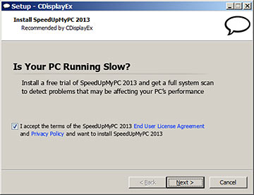 The previous version of CDisplay's installer presented me with a total of 13 different windows, most of which were the usual things saying where-do-you-want-it-installed, do-you-want-a-desktop-icon, and so on. But four of them gave these sterling shovelware opportunities: