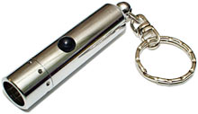 If this thing looks a little familiar to you, that's not surprising. Finewell's flashlight is built into a keyring laser pointer case, 14mm wide by 65mm long, not including the chain (0.6 by 2.6 inches). Instead of a laser diode module, it's got a high intensity white LED.