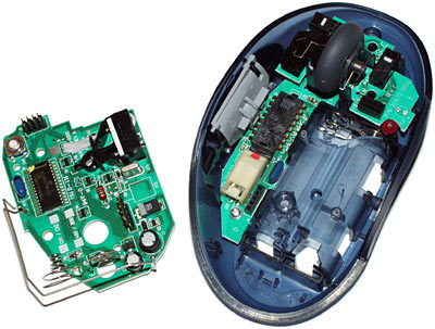 But optical mouses need an illuminator to let the camera see what's going on, and they need to run that DSP chip, too. The super-bright red LED illuminator and the somewhat power hungry processor mean that an optical cordless mouse would appear to need some pretty fat batteries.