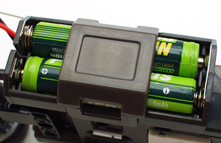 The Mini-Z's fire-breathing power source is four AAA cells, which should be rechargeable if you want the same speed for the whole run.