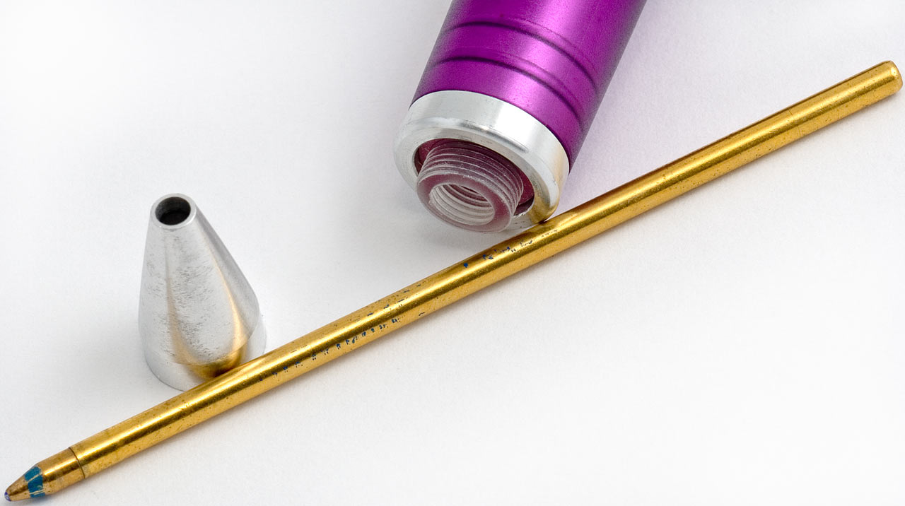 If you let this pen bounce around in your pocket with your car keys, the colour will wear off it eventually, and it may even end up looking more or less like my elderly (but perfectly functional) Bullet: