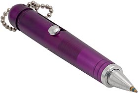 Swap the cap to the other end and you've got your standard Fisher point. The Stowaway's five inches long, now (it's a tad more than four inches in stylus mode), so you can write with it reasonably comfortably. It's only a quarter of an inch thick, though, so it's still not ideal for lengthy epistles. But it beats the heck out of the Wallet Pen. At the price of... probably not fitting in your wallet.