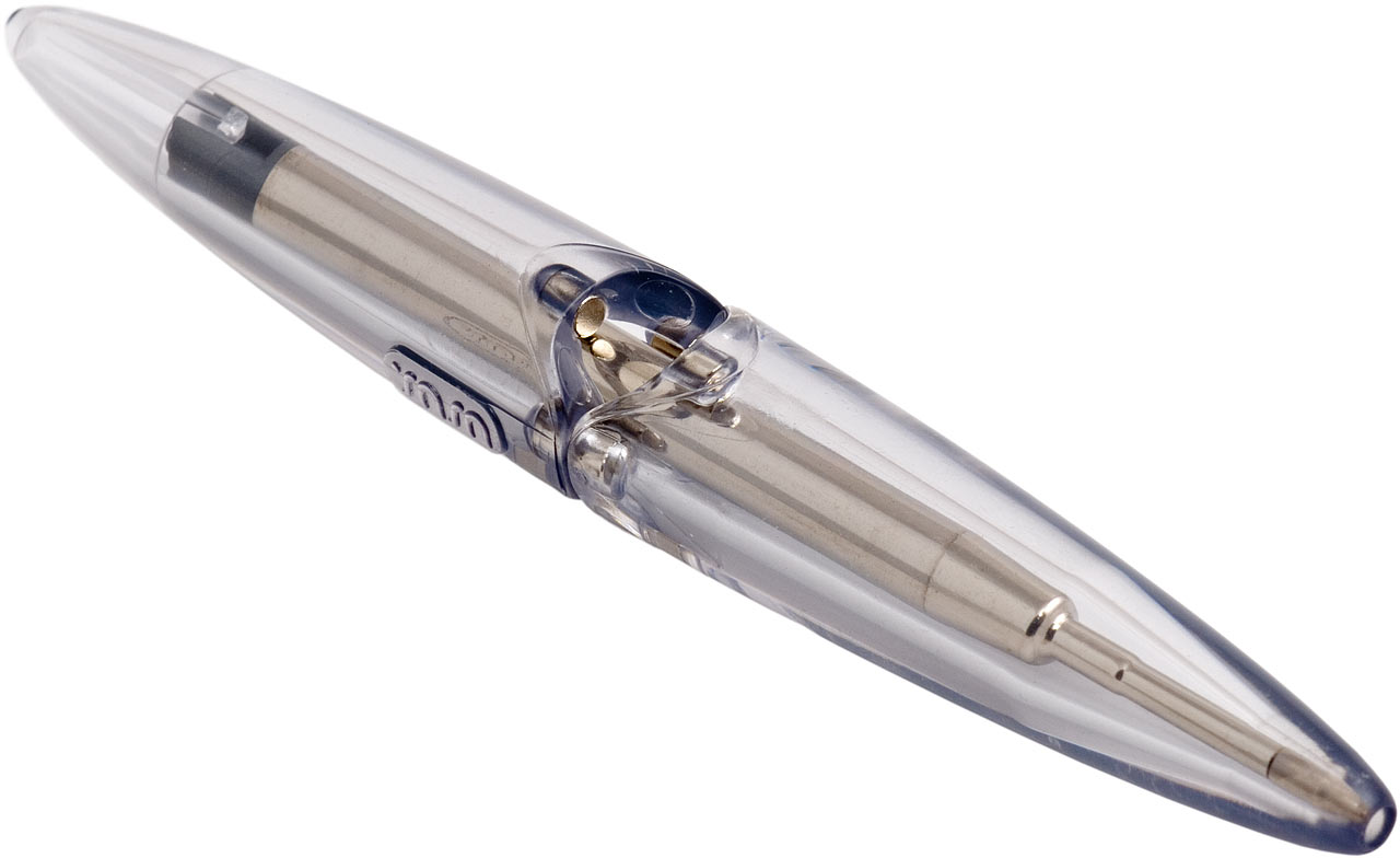 Anyway, this freaky looking pen is held together by rare earth magnets. This version of the pen has a clear plastic body, probably Poly(methyl methacrylate) for all of you who were wondering, so it's easy to see how it works.