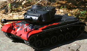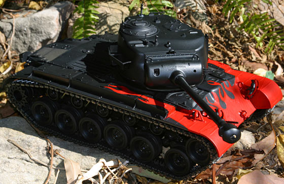 If you want a model tank you can bash around the back yard, the Pershing also fits the bill. Leave the fragile twiddly bits off, paint it as realistically or unrealistically as you like (or just leave the thing in bare green plastic, as I did with my Sherman for a while), and have at the rhododendrons. While the Pershing isn't immune to drive system damage caused by foolish blundering through coarse gravel or thickets of sticks, if you drive it with care, there's not much in the way of garden terrain that it won't be able to conquer. And what it can't climb, it can shoot.