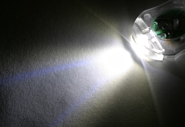 The white X-Light has an unusually broad beam, useful for seeing where you're walking at night.