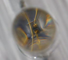 Peer into the end of the LED with sufficient magnification and you can see the unusual amount of wiring it contains.