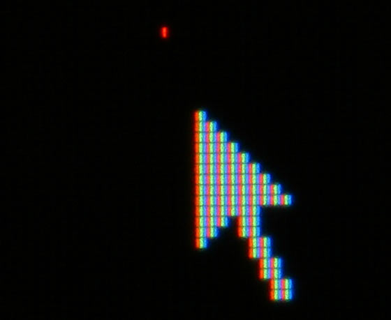 Not quite as many pixels, either, since I'm now back in 1280 by 960 mode. The best vertical refresh rate the 955DF can manage at this resolution is 85Hz, so there's a teeny bit of visible flicker, too. Different people detect flicker at different thresholds; 75Hz is fine for some, 100Hz isn't enough for a few unfortunates.